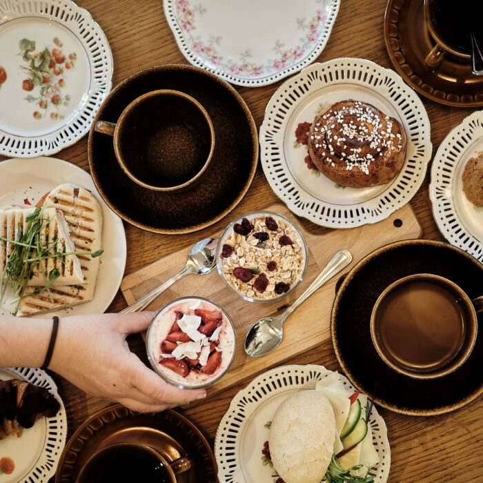 I caféet säljer vi kaffe/te, smörgåsar, fika samt lättare lunch.